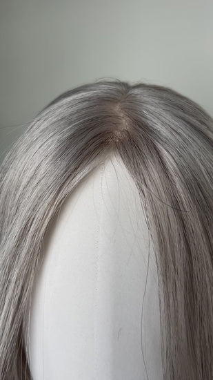 Blush - a silk top topper in lovely salt and pepper silver, perfect if you're looking for something to match light grey natural hair.