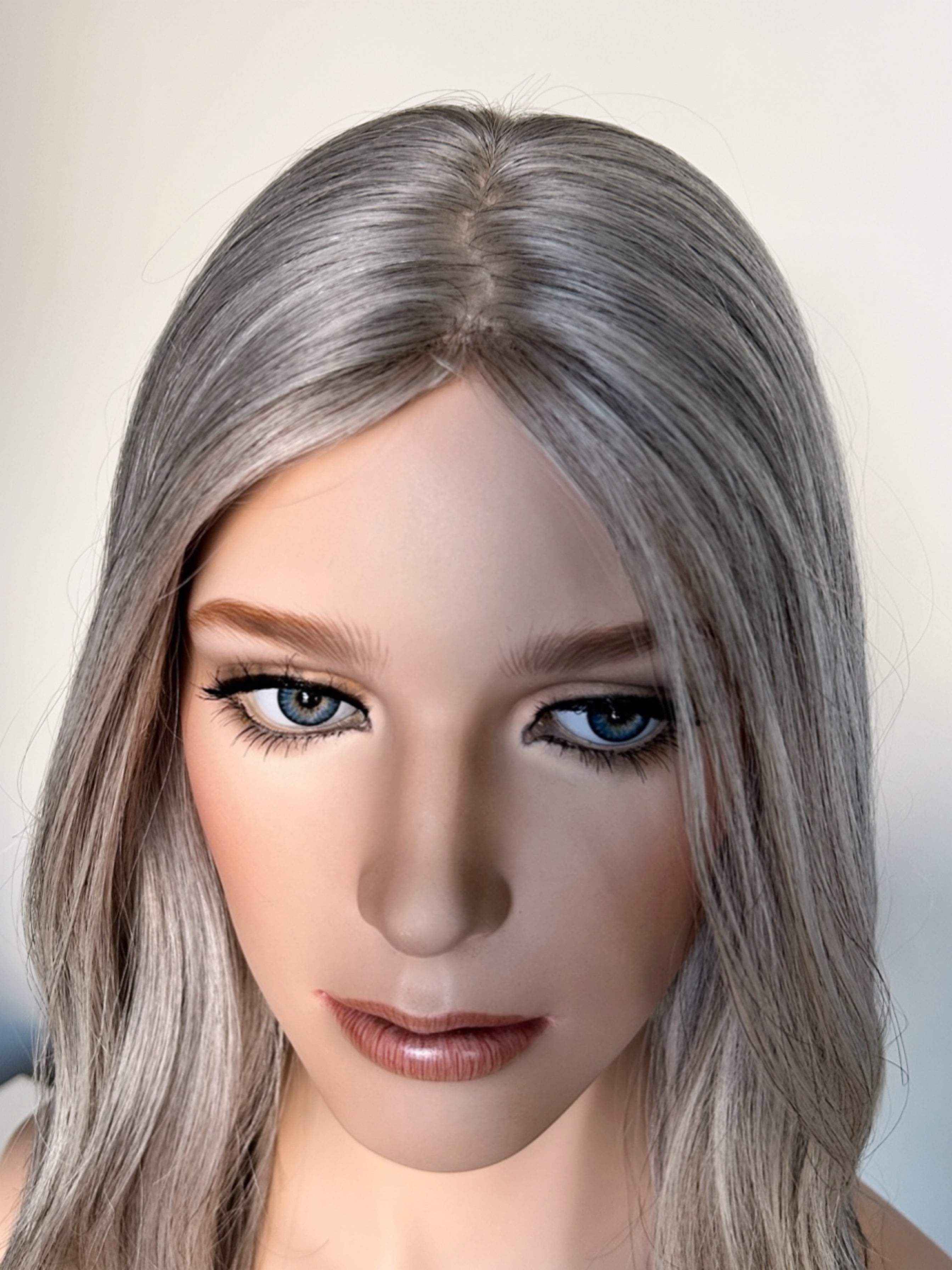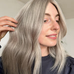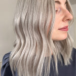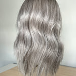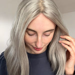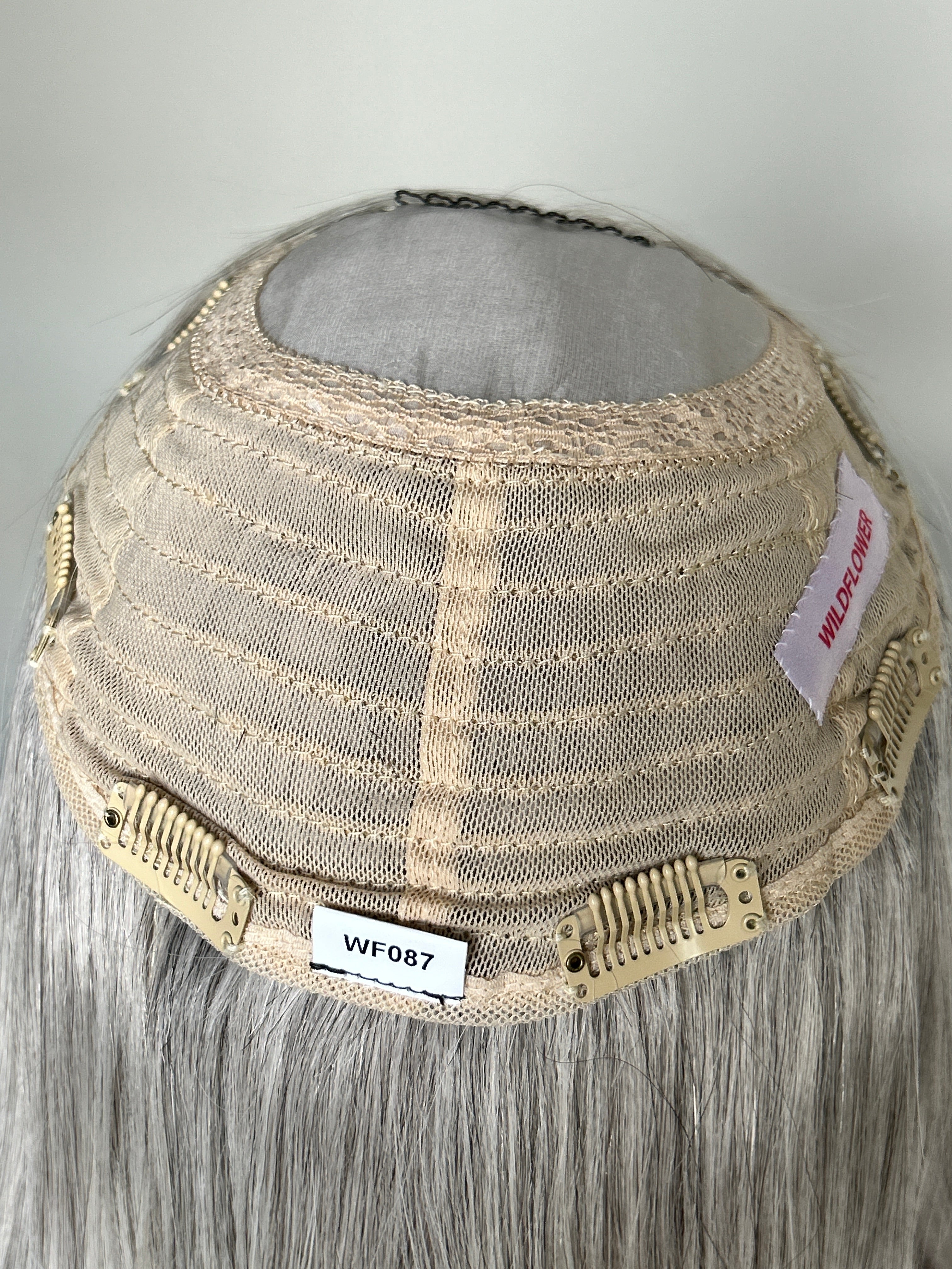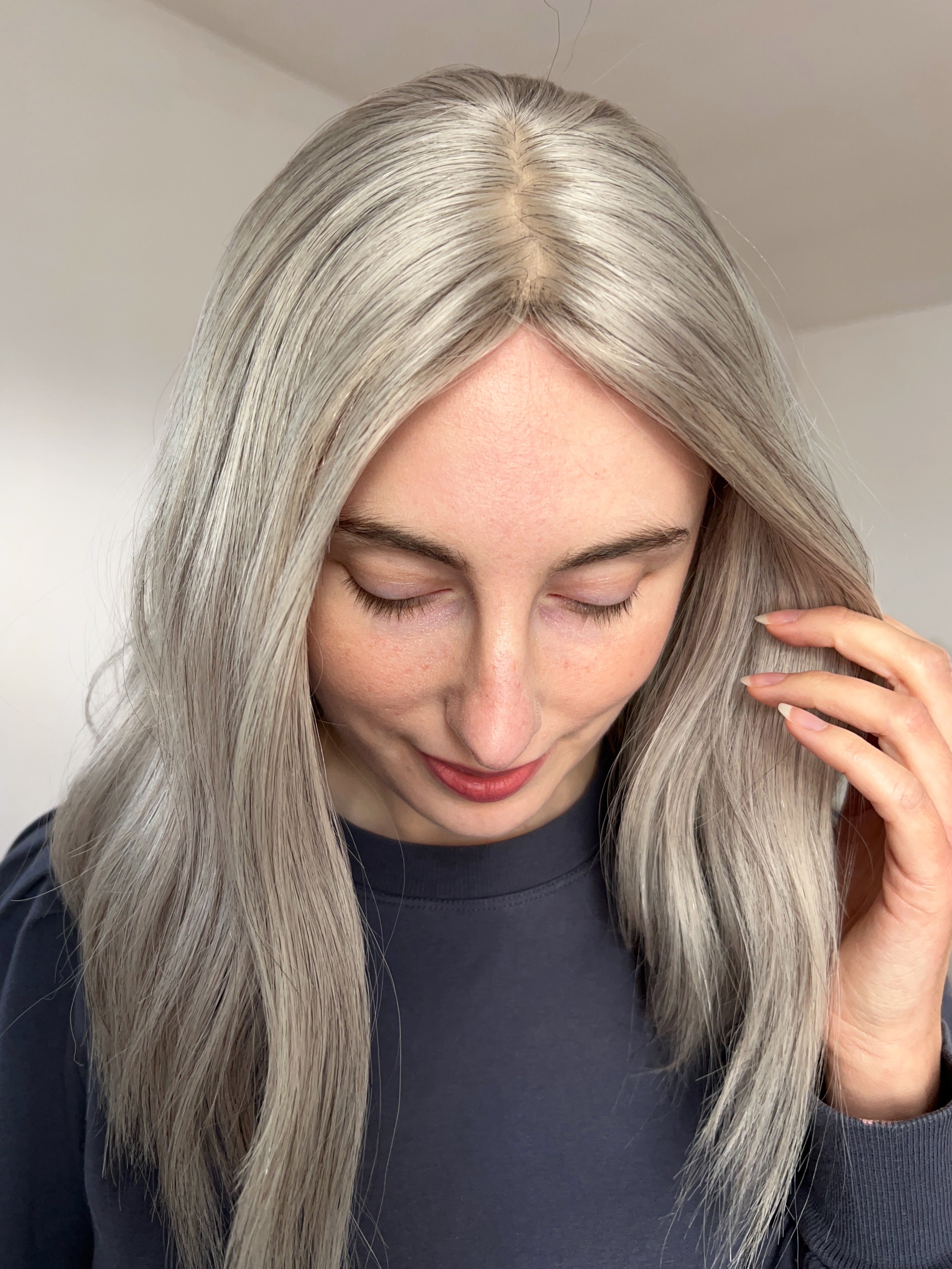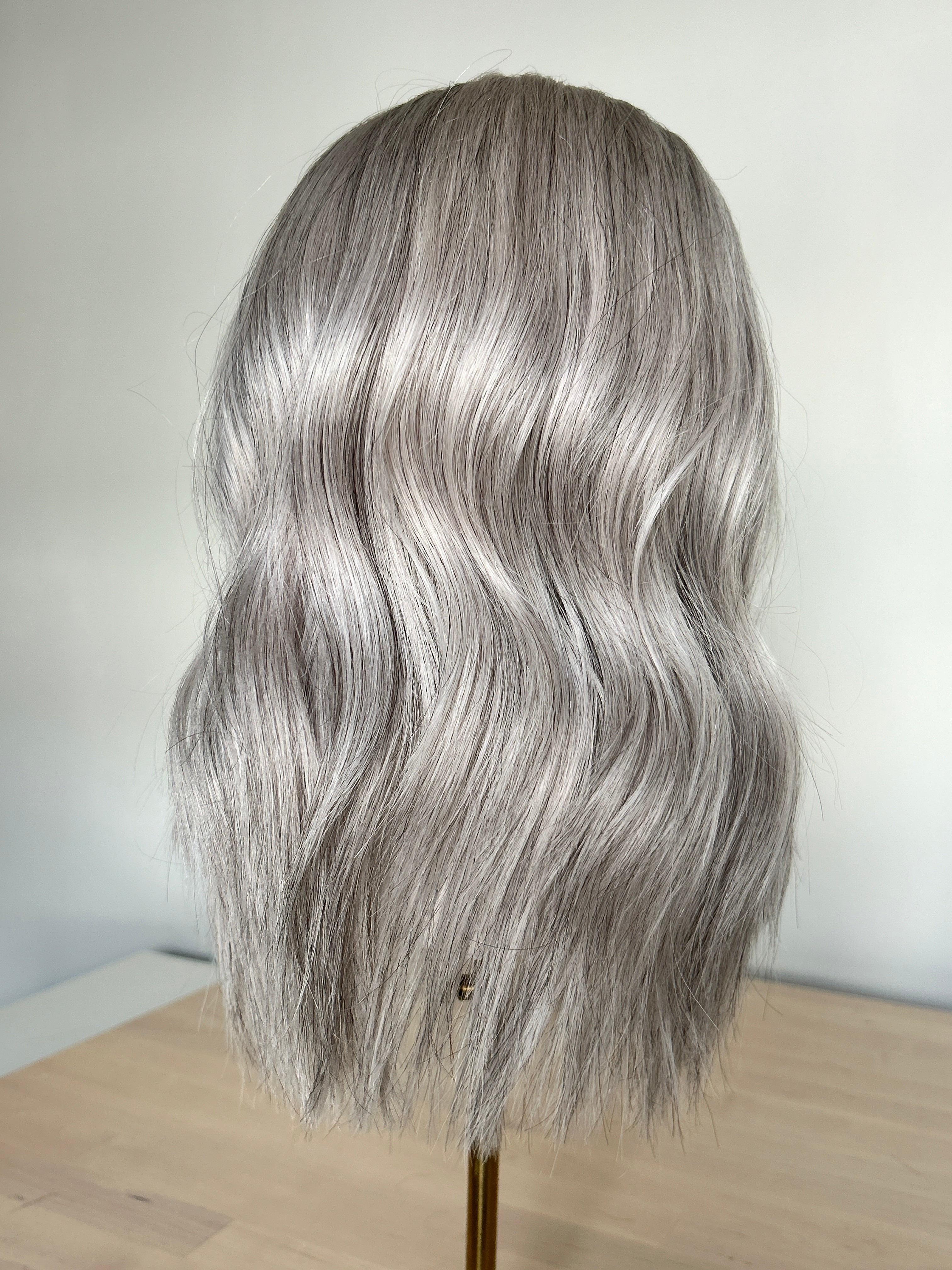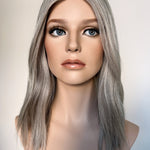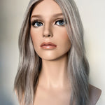 Blush - a silk top topper in lovely salt and pepper silver, perfect if you're looking for something to match light grey natural hair.