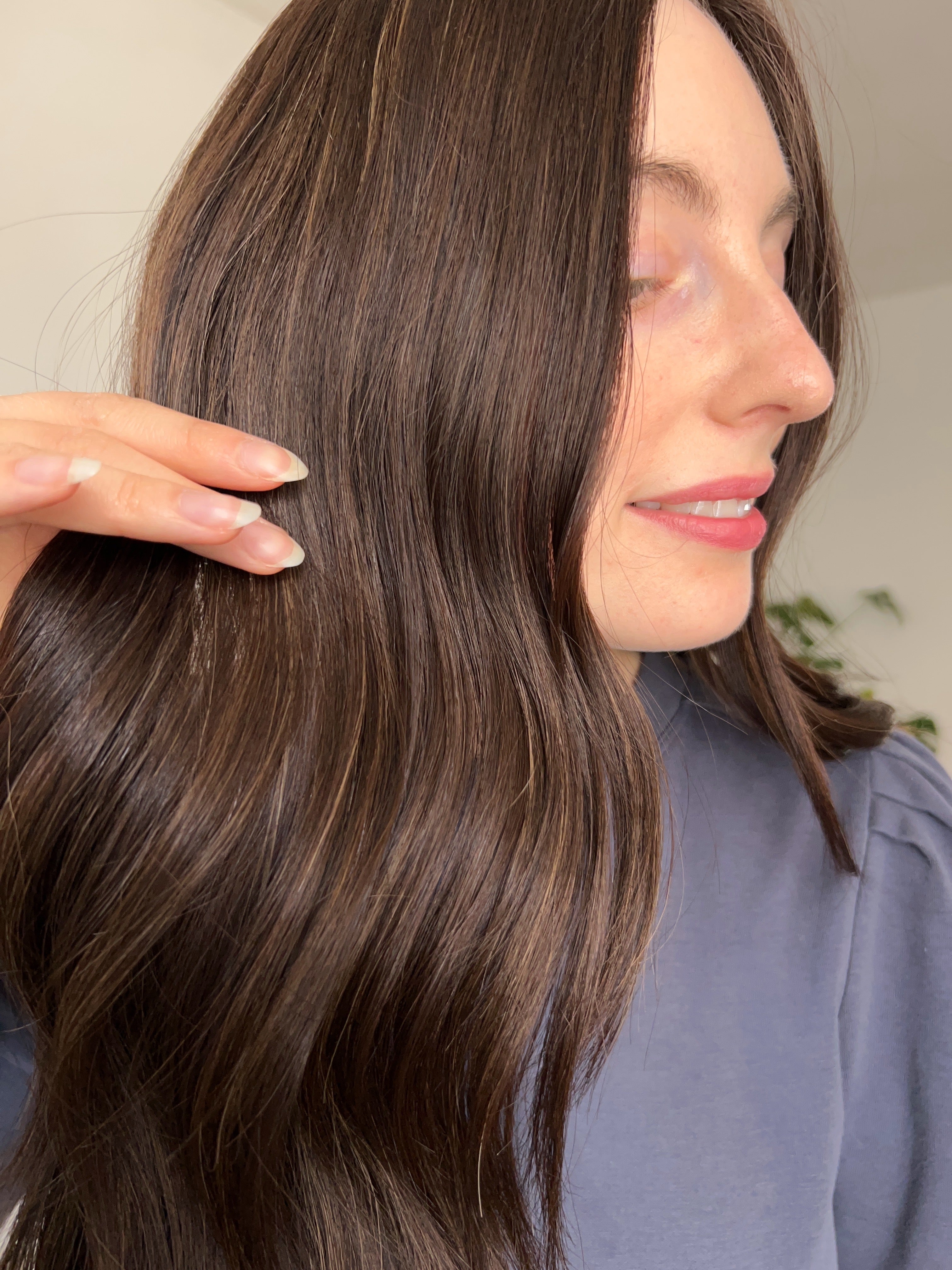 • Apply a drop of lightweight hair oil to the mids and ends every few days to maintain hydration and prevent dryness. For blonde pieces, choose a colorless oil.