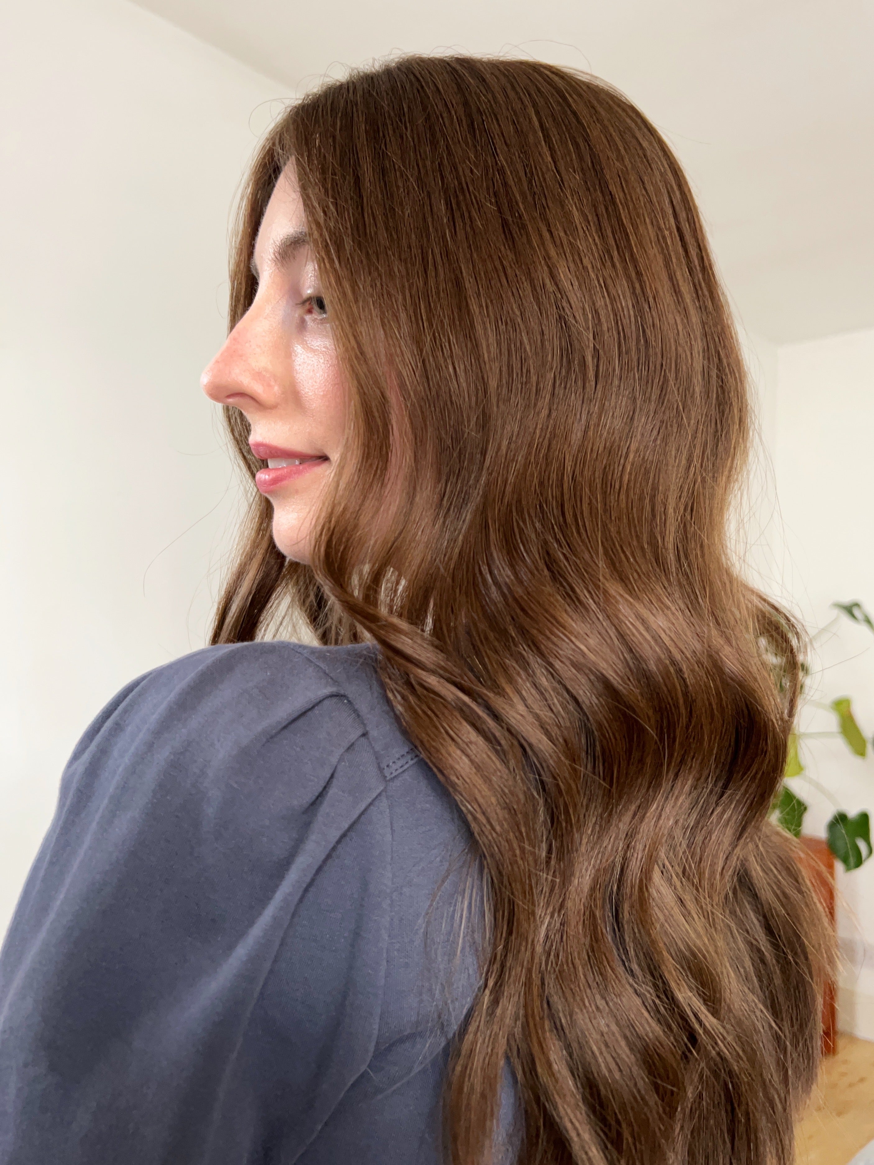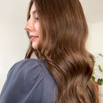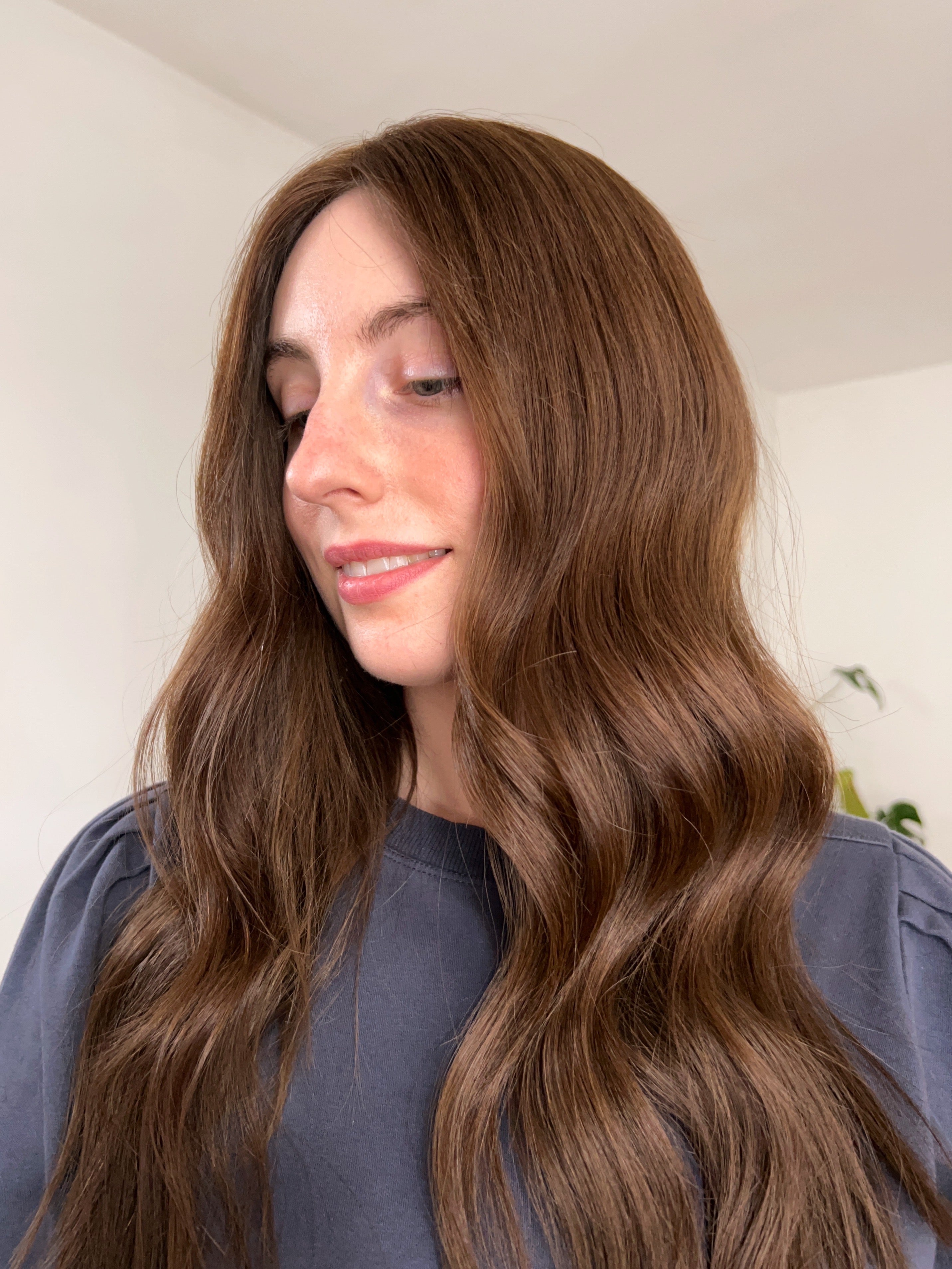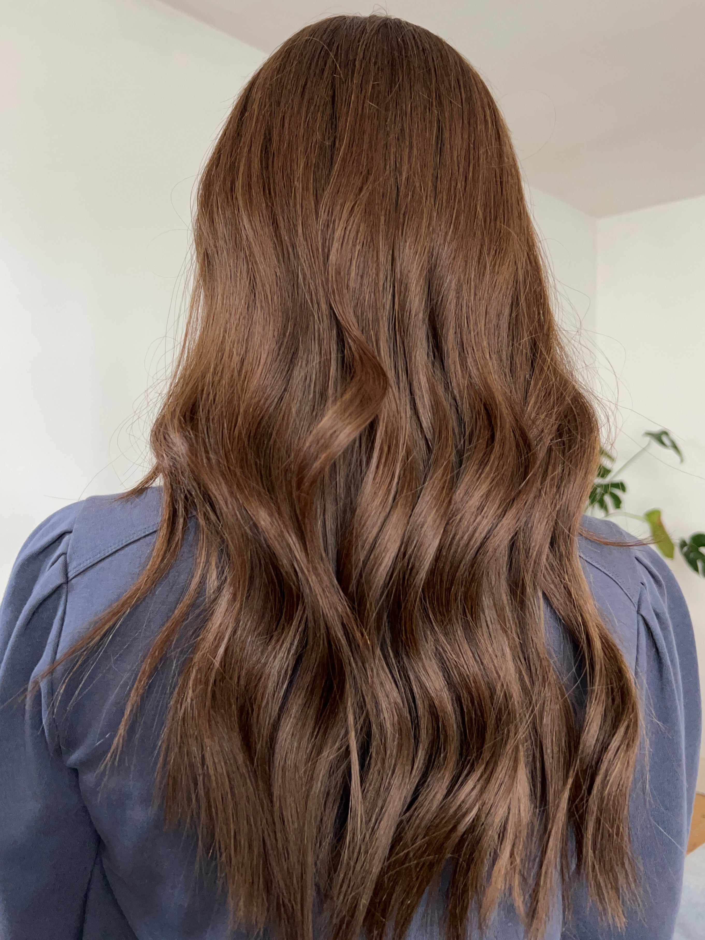 Colour: Medium brunette with subtle golden dimension; warm in tone