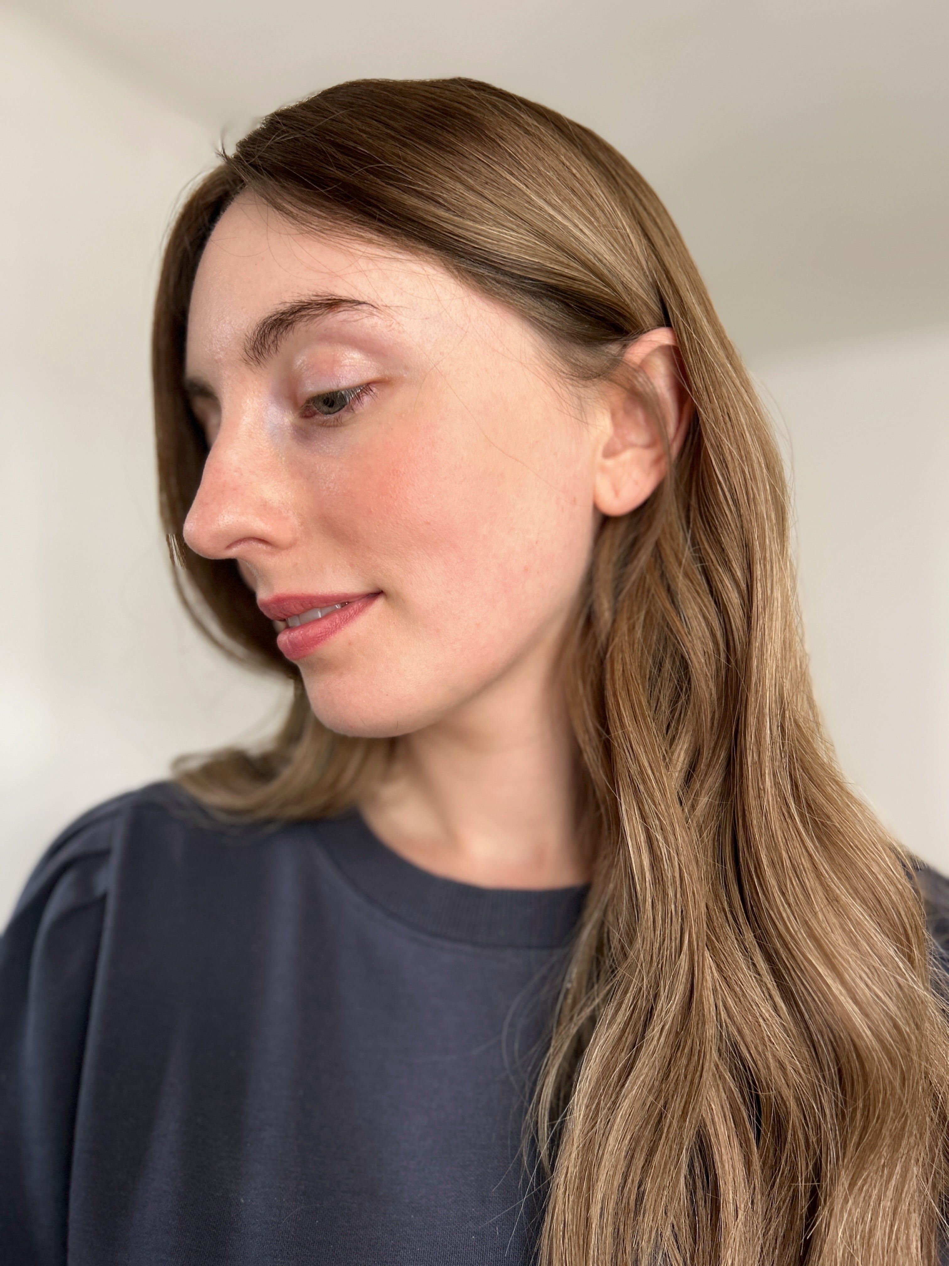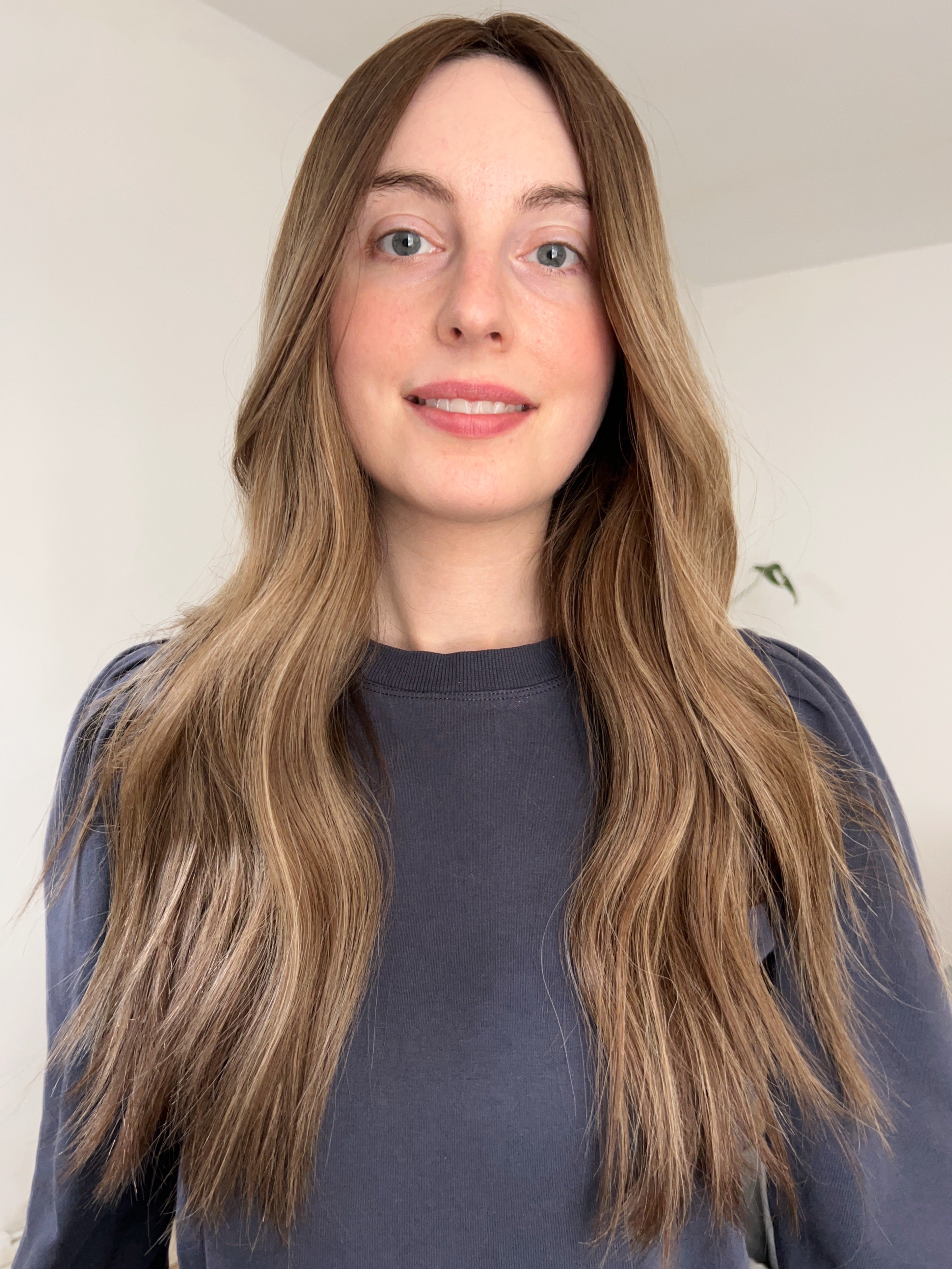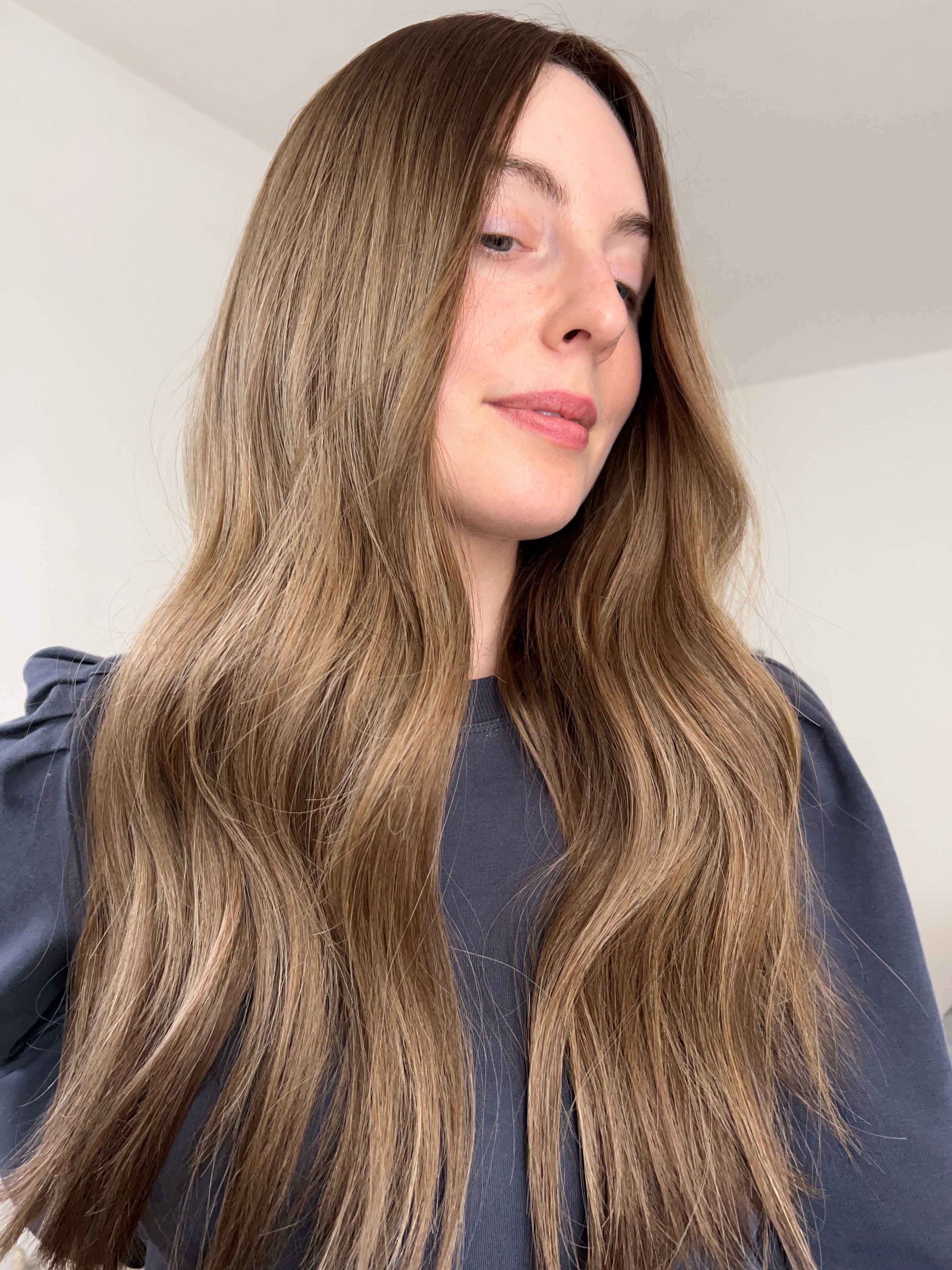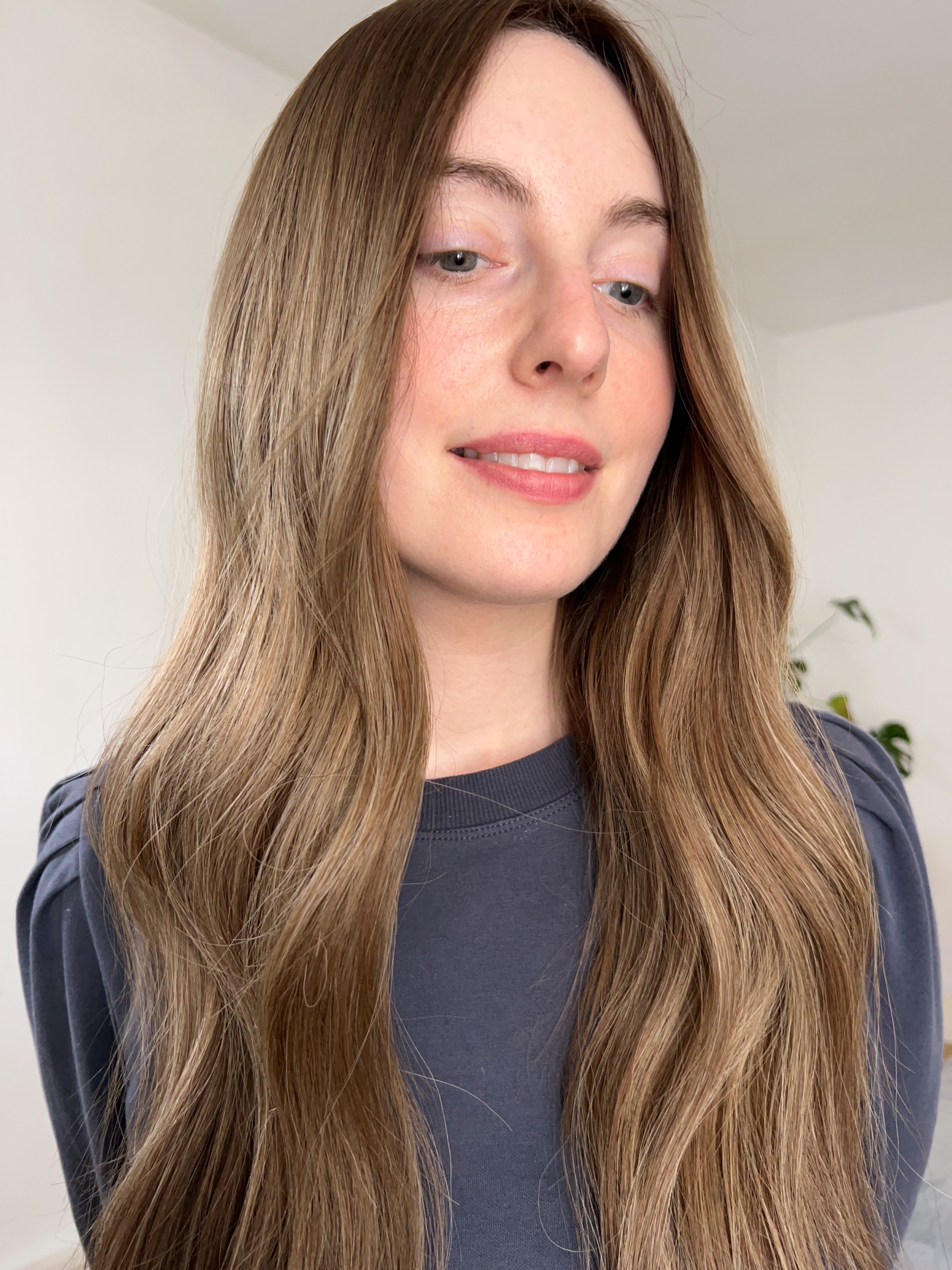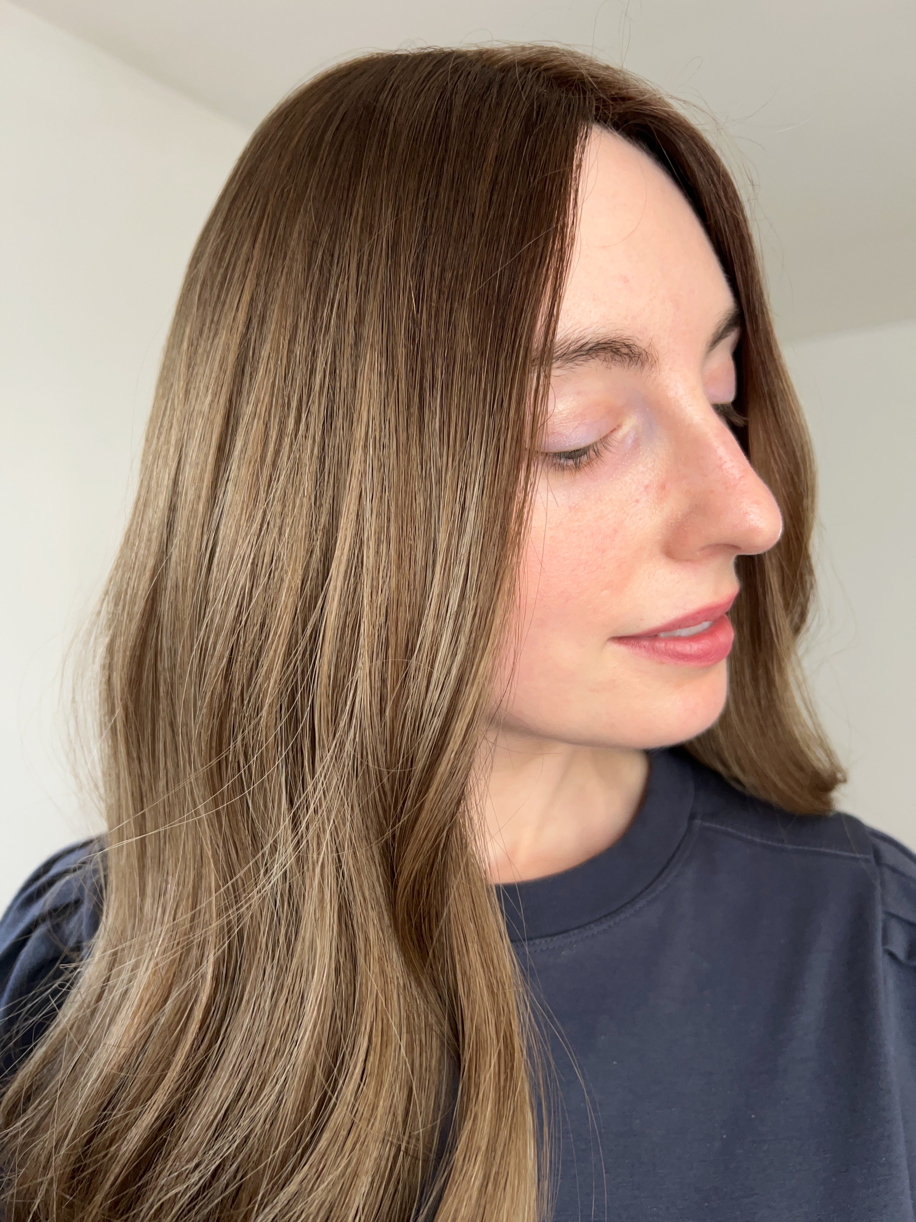 Colour: Dark neutral blonde with ash blonde subtle highlighting, with light brunette stretch rooting