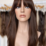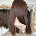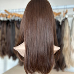 HAIR TYPE: Highest quality Brazilian grade virgin remy human hair. Mid to dark brunette level 5, warm in tone.