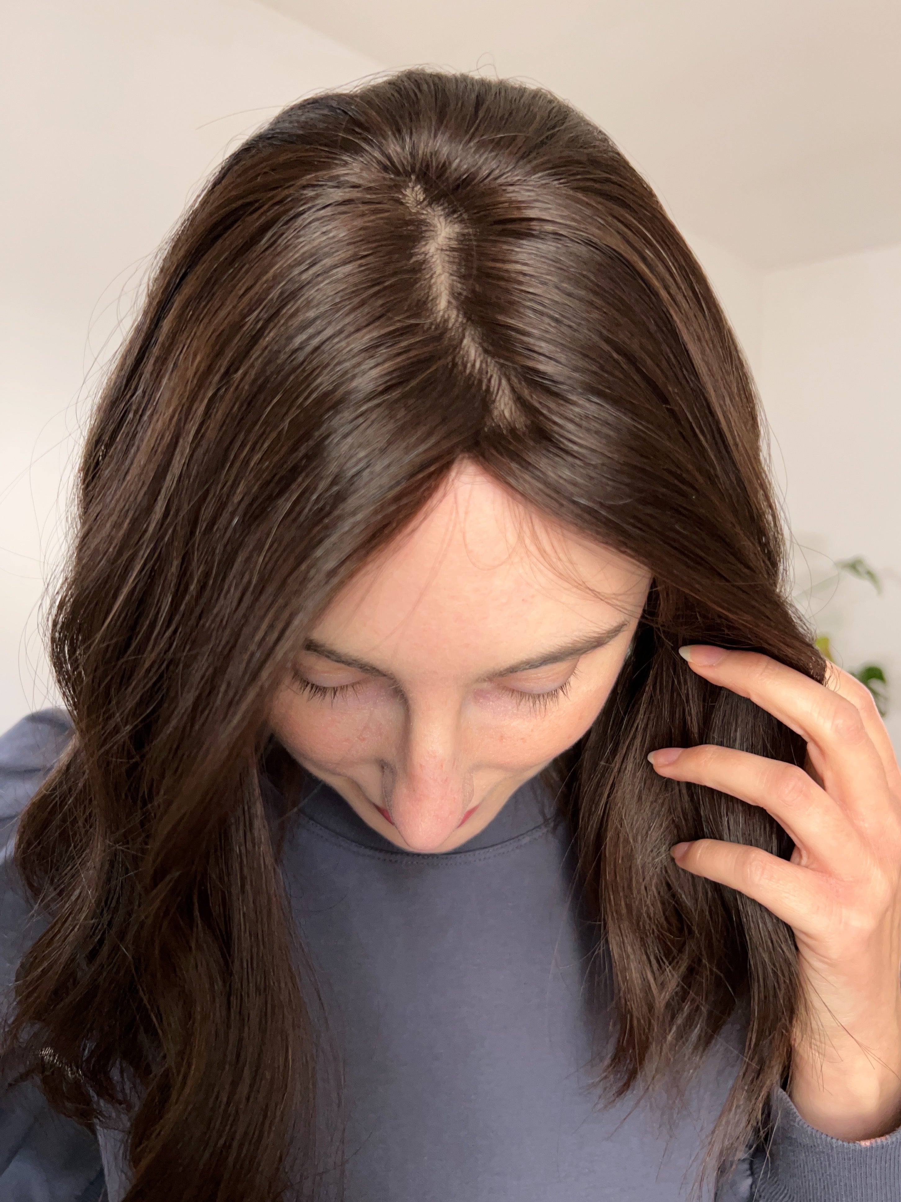 Note: I have light brown hair, so sometimes it might peek out under the topper or wig in photos/videos, especially if the colour isn’t an exact match. Don’t worry, it’s not part of the piece!